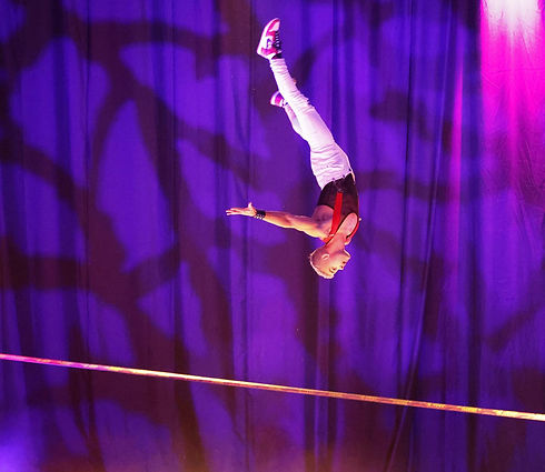 Anjo Robson presenteert bij Wintercircus Royal in Dordrecht een relatief nieuwe circusdiscipline: de slackline.